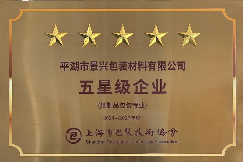 喜報!景興紙業(yè)全資子公司平湖景包被上海市包裝技術(shù)協(xié)會授予紙制品包裝專業(yè)“五星級企業(yè)”榮譽稱號