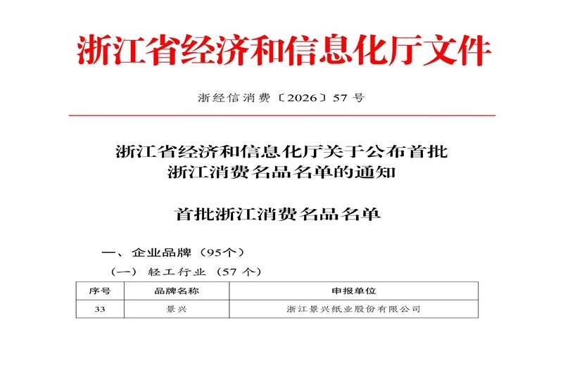 榜上有名 | “景興”躋身首批浙江消費(fèi)名品之列